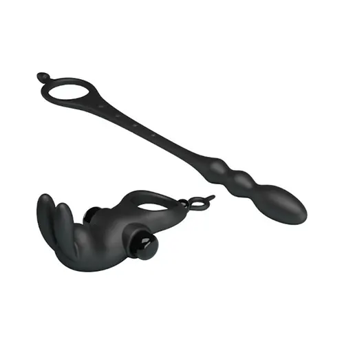 O Anel Peniano Vibratório e Plug Anal Pretty Love tem um acessório especial, um plug anal/corrente anal.