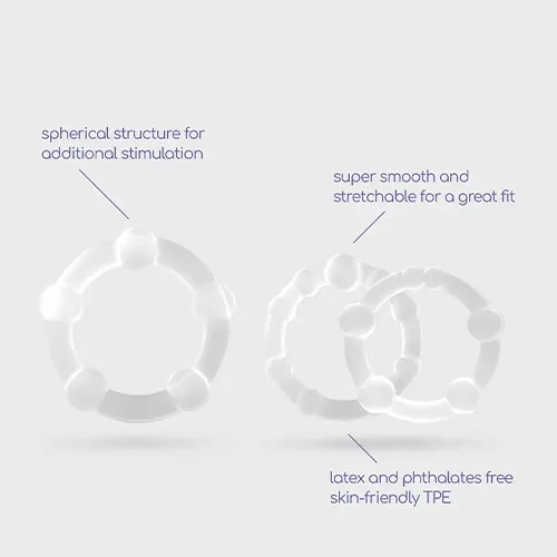 Descrição do Conjunto de Anéis Penianos Triple Bead Transparentes: