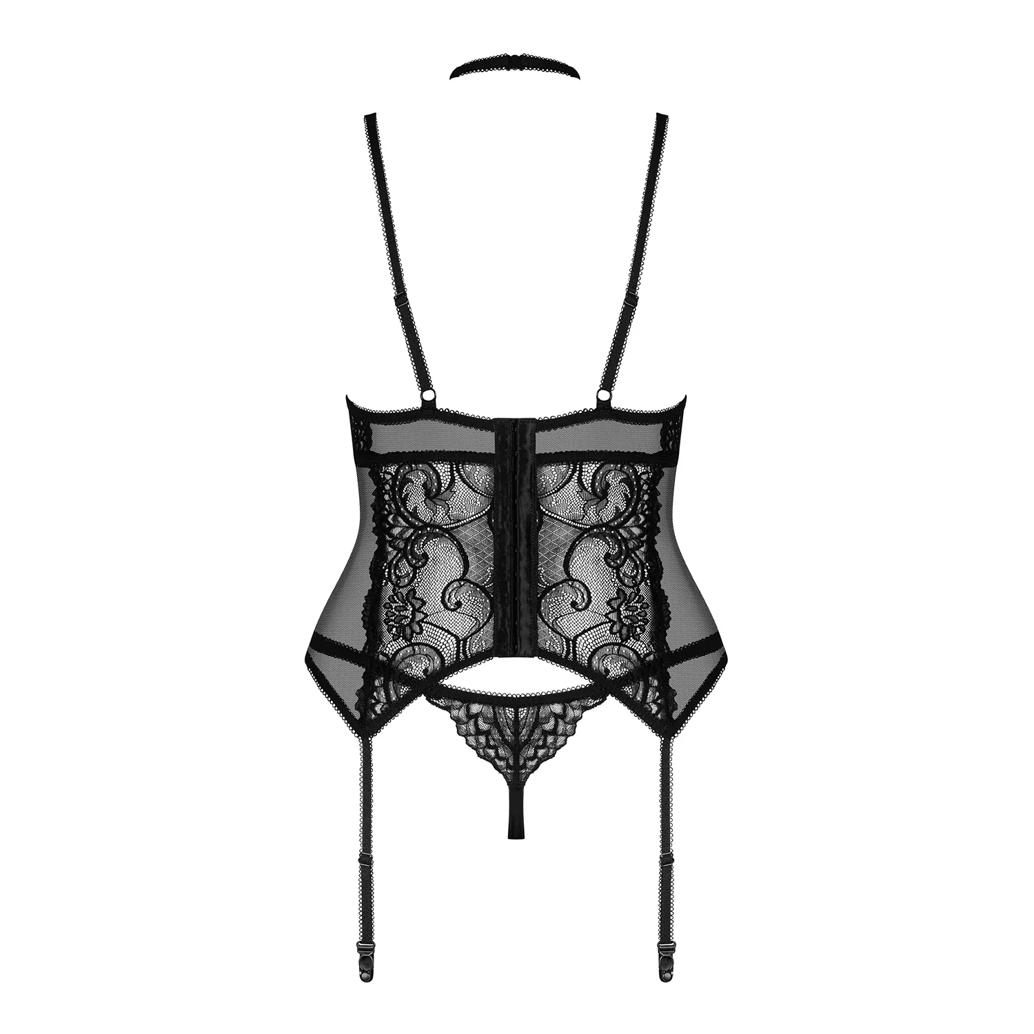 - Corpete e tanga translúcidos sensuais.