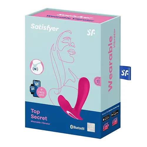 • O Satisfyer Top Secret com a sua estrutura curvada abraça elegantemente as suas curvas enquanto o usa. Graças à aplicação de controlo, pode deixar o seu querido controlar remotamente o amuleto do prazer ergonómico com uma seleção infinita de programas de vibração.