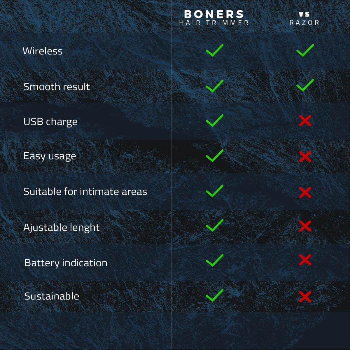 Máquina de Barbear da Boners adequada para todas as áreas íntimas.