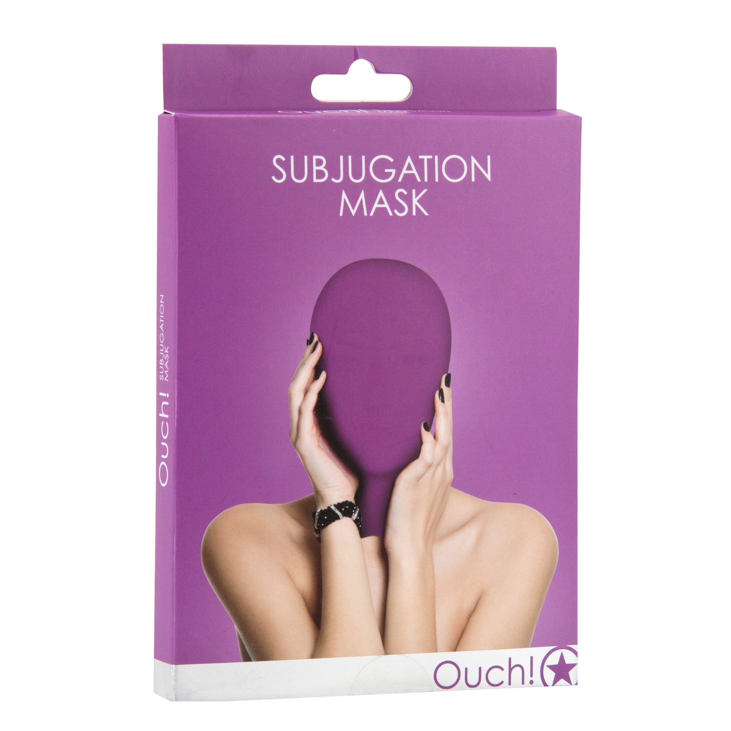Esta confortável Máscara Subjugação Roxa foi criada para ajustar-se perfeitamente à cabeça e fecha-se facilmente na parte de trás graças ao fecho zíper.
