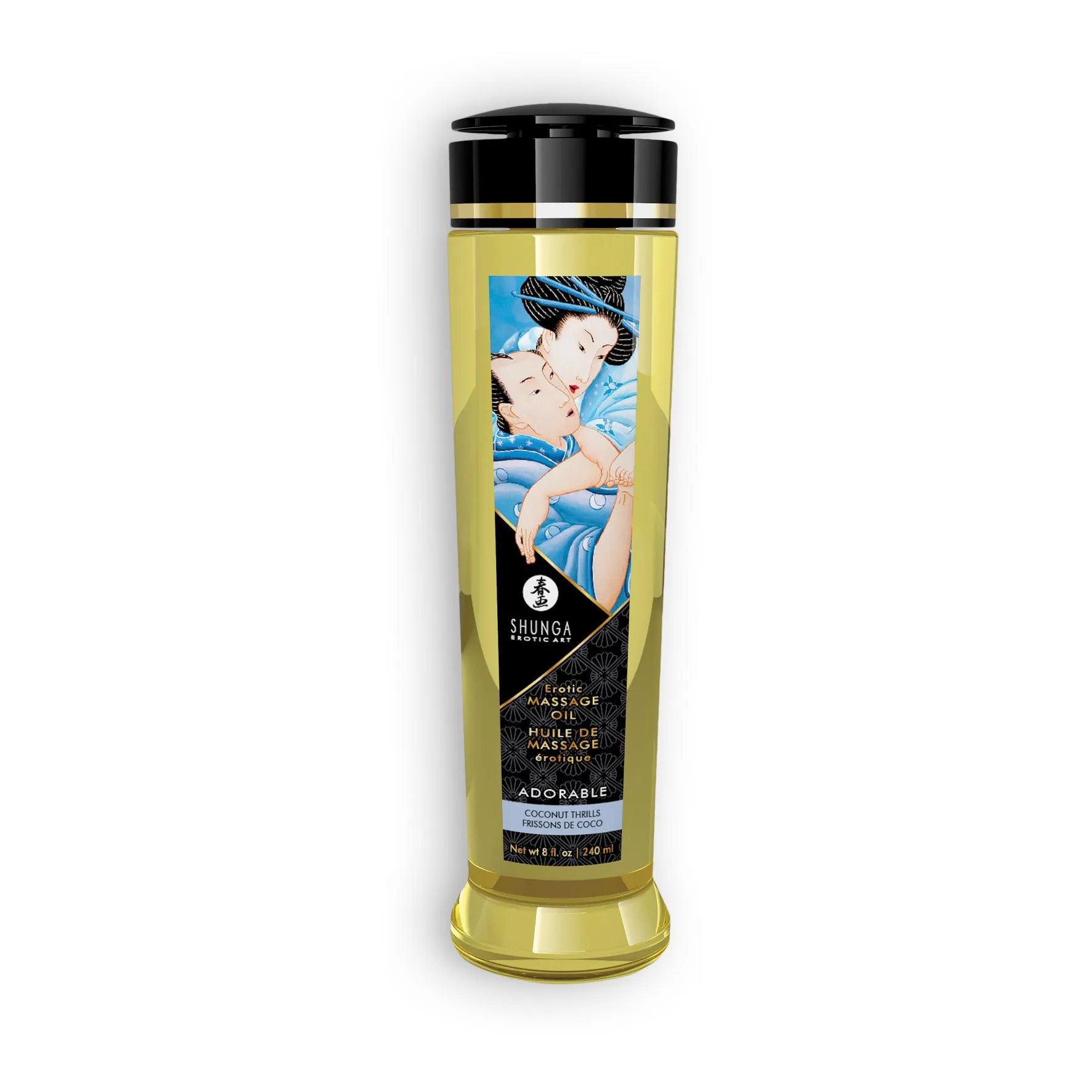 O Óleo de Massagem Shunga Adorable Emoções de Coco tem uma incrível fragrância a coco e fará com que os seus sentidos atinjam o pico do prazer.