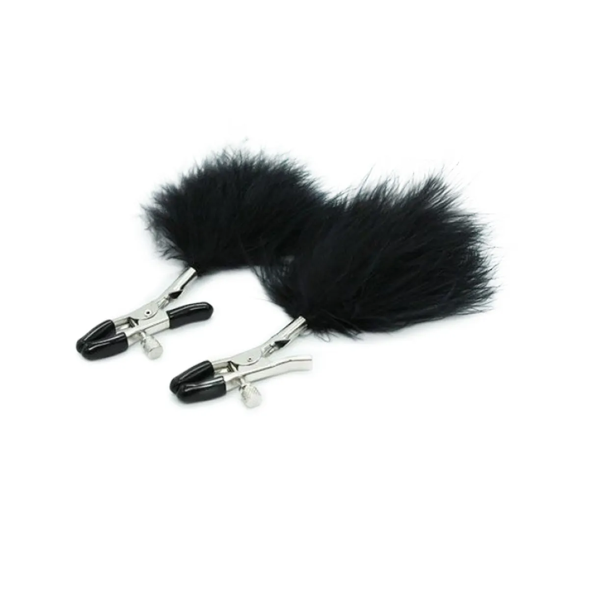 - Elegantes e chiques, estas sensacionais pinças metálicas revestidas de borracha proporcionam sensações incríveis! Os terminais são facilmente ajustáveis graças ao parafuso, e as penas fazem cócegas além da imaginação. Ótimas para os principiantes e os amantes de fetiche!