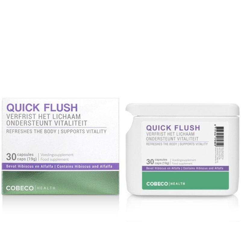 Cobeco Quick Flush é uma mistura de vitaminas nutritivas e ervas que contribuem para uma limpeza puramente natural do corpo.