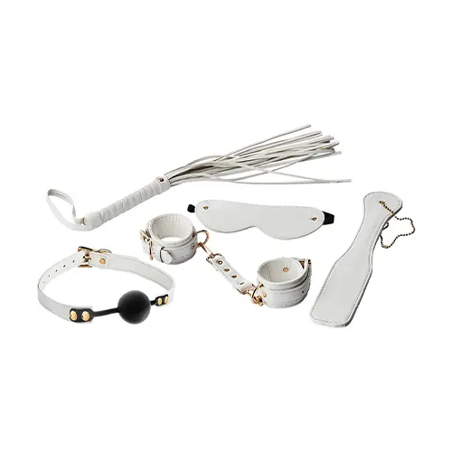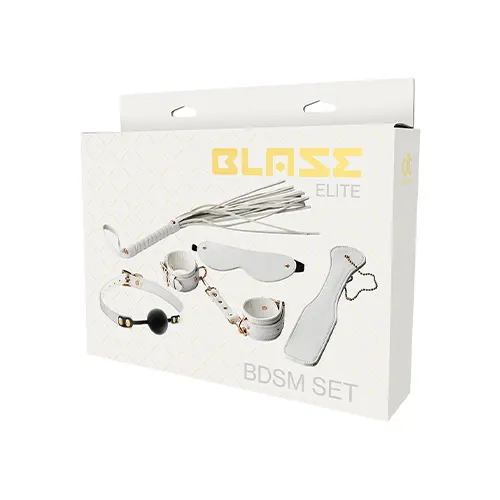 Porque é que o equipamento BDSM tem de ser sempre preto? O Set de BDSM Elite Branco de 5 peças da marca Blaze Elite é feito de couro artificial branco, o que lhe confere um aspeto muito elegante!