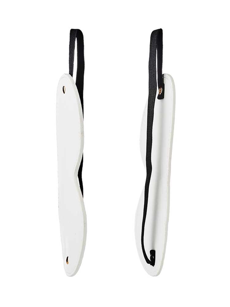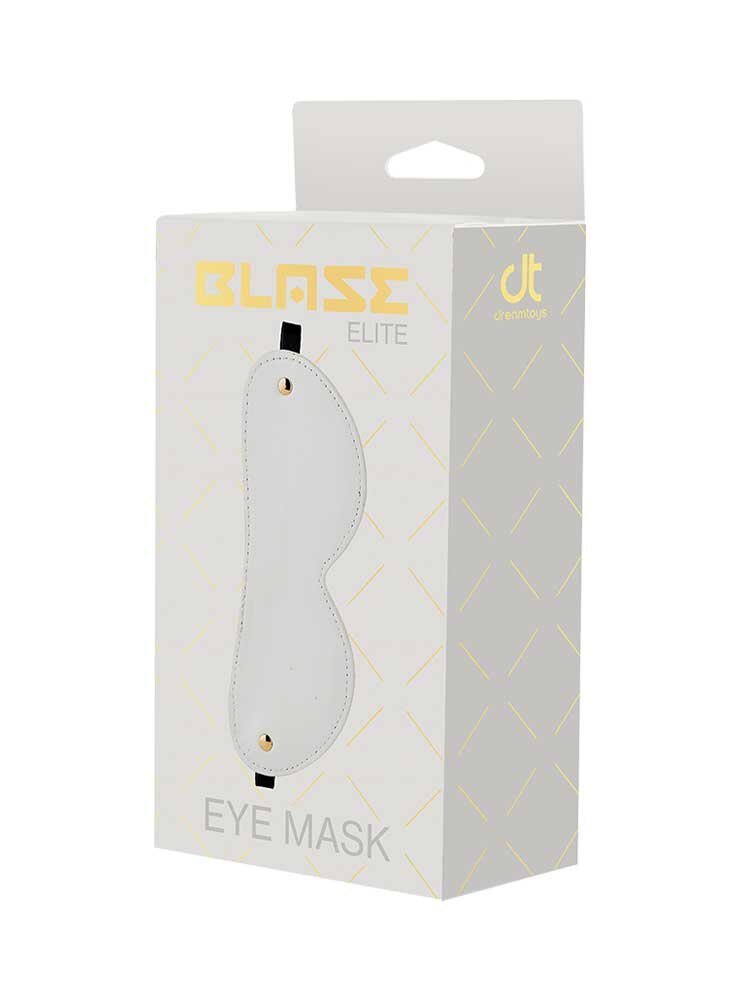 A Venda de olhos Branca é feita de couro preto e acolchoada no interior para um ajuste confortável e visão mais eficazmente obscurecida.