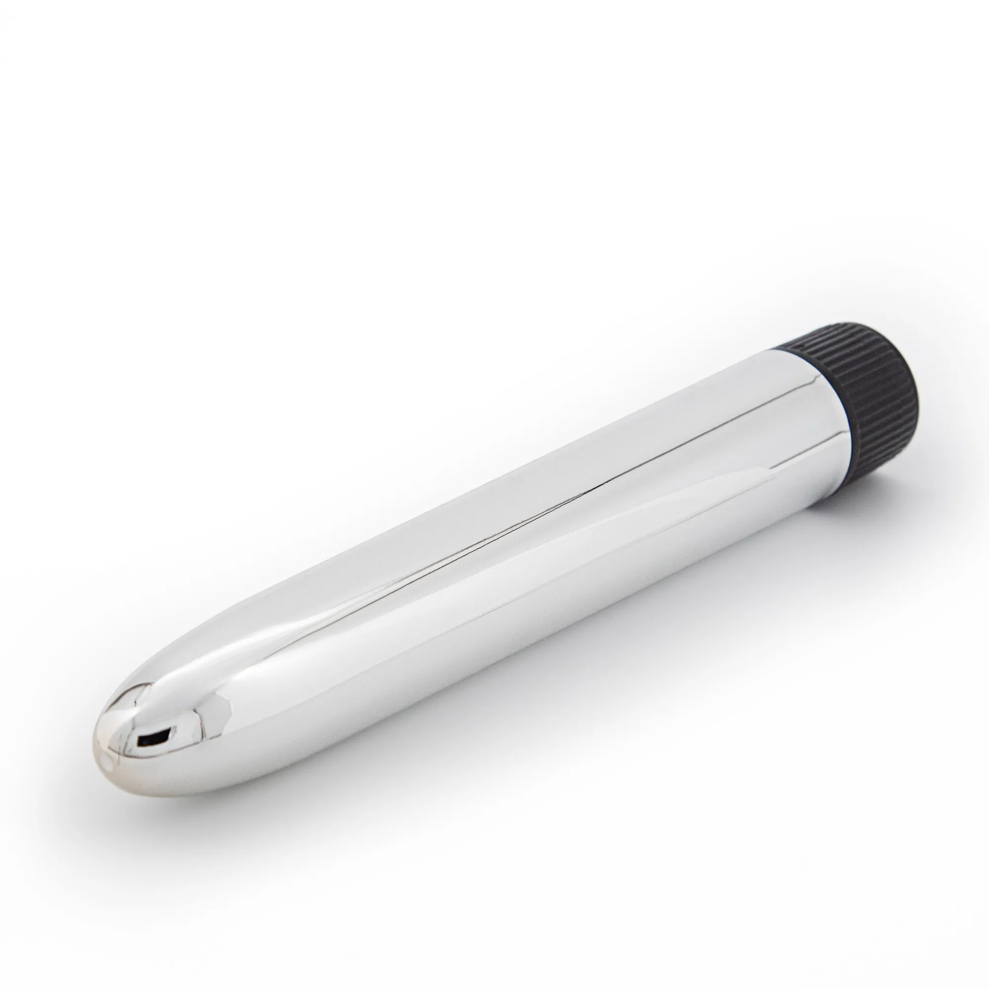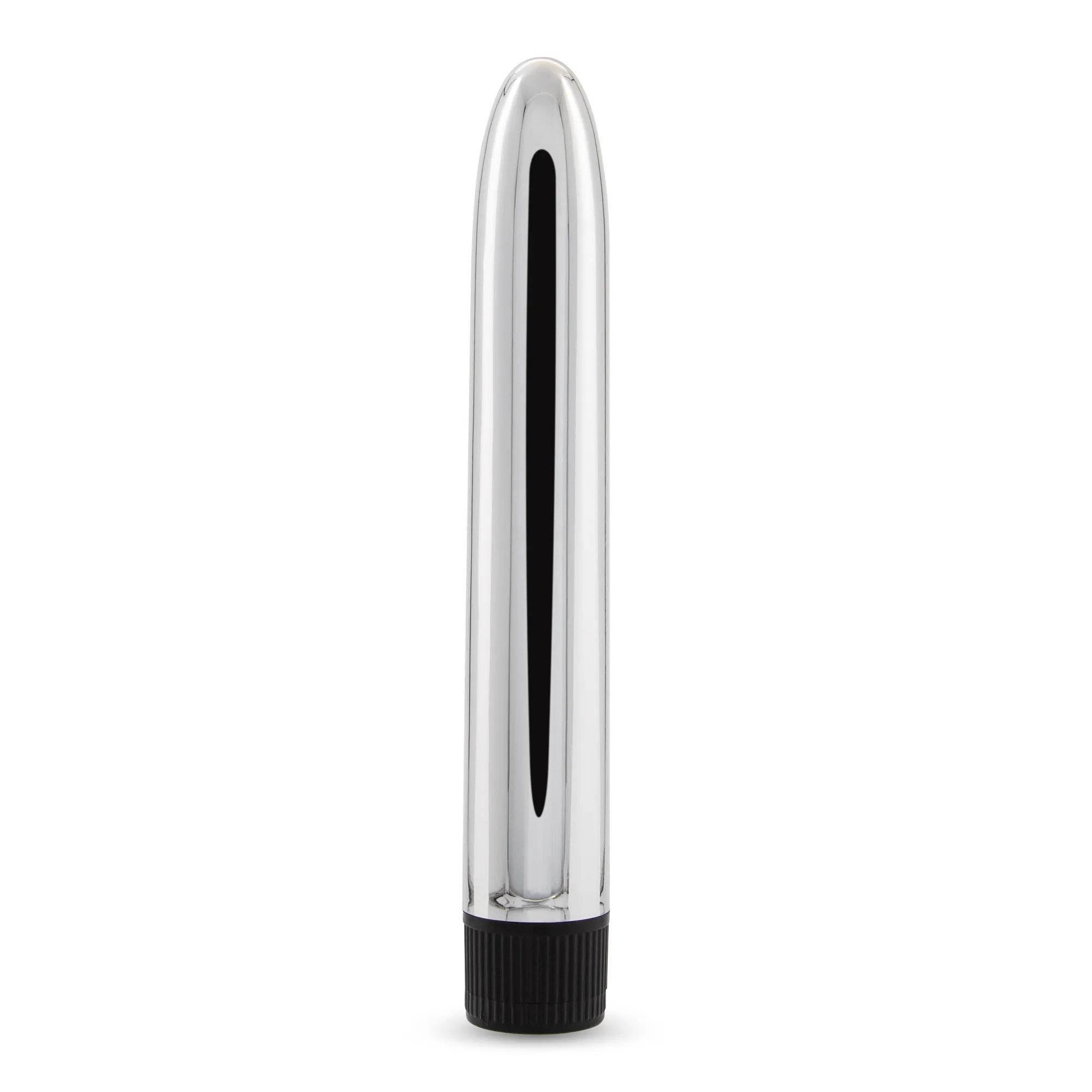 - A sua forma metalizada e fina é perfeita para iniciantes, basta rodar a base para controlar a intensidade da vibração.